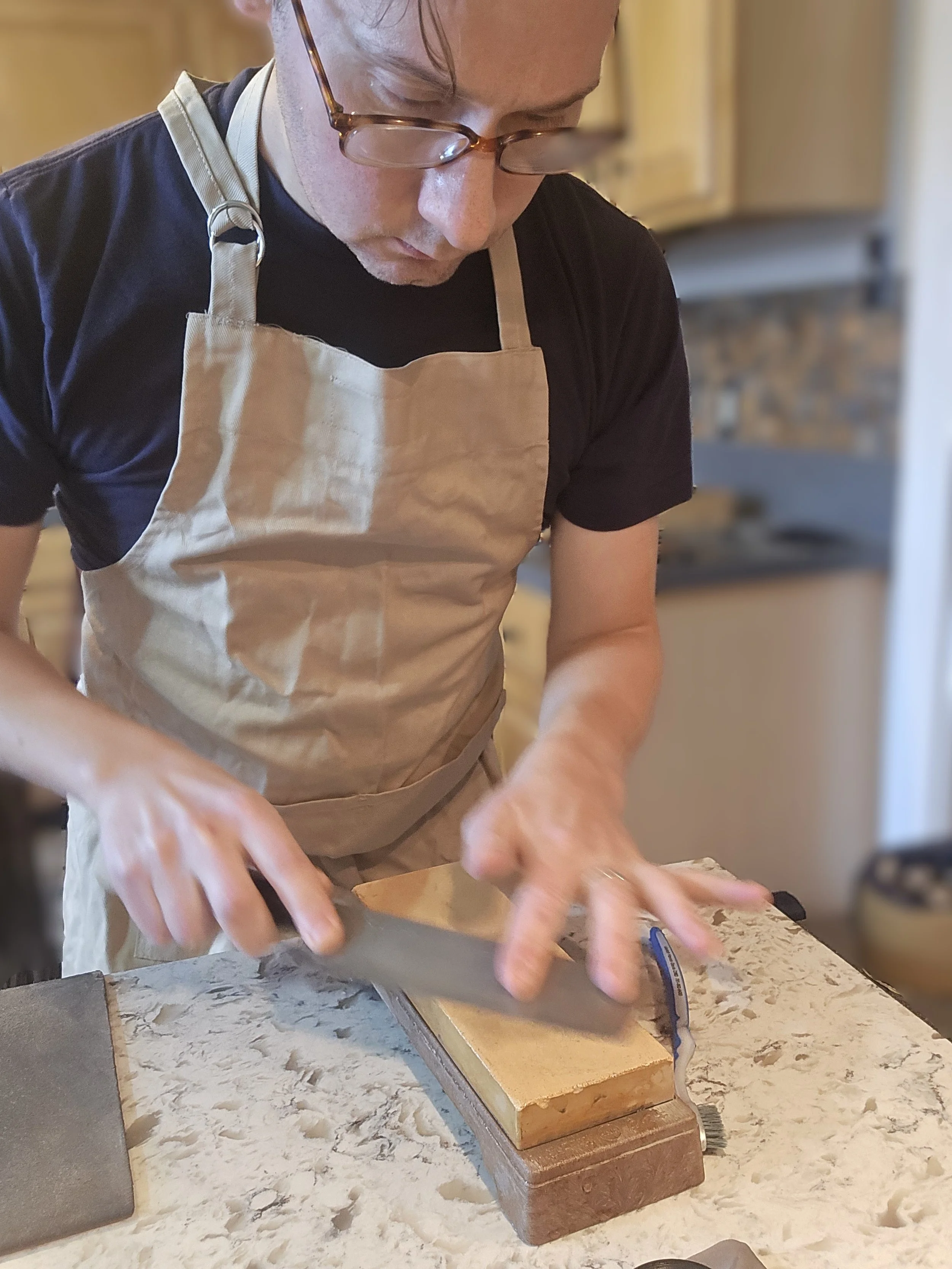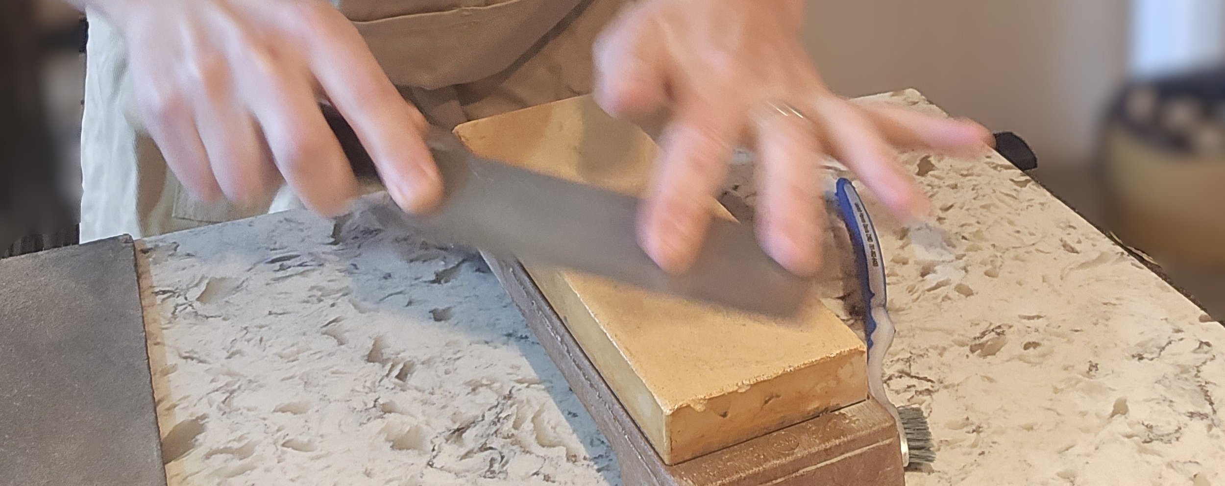 Our sharpening process is designed to give you a longer lasting edge. At Simply Sharp our sharpening process fully removes the burr from each knife. We take pride that every knife we sharpen is fully stropped and deburred; giving you a lasting edge that does not require honing on a steel or your own pull through sharpener