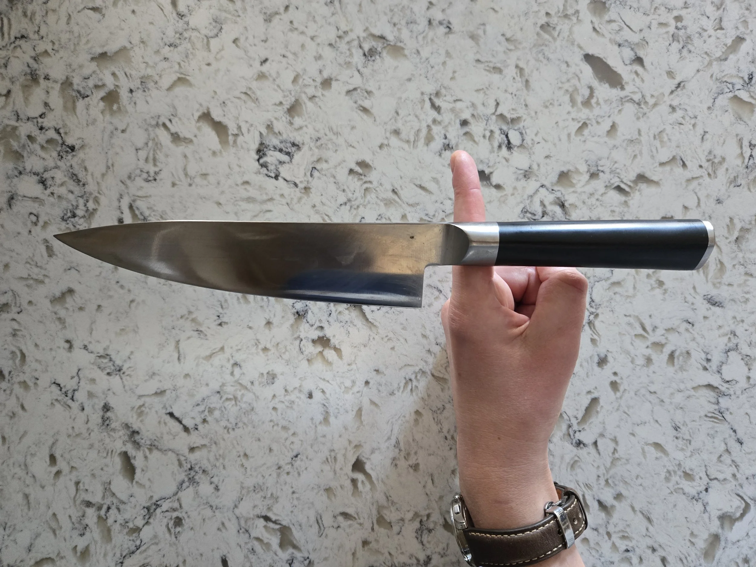 Our knives are balanced at the end of the handle, where you grip the blade.